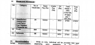 পদের নাম: মেট, বার্বার, ওয়াশারমান, কুক, টেলর, ইকুইপমেন্ট রিপেয়ার এবং কার্পেন্টার পদে মোট ৫১ টি শূন্যপদে নিয়োগ করা হবে। পোর্টার পদে ৫৪১ টি শূন্যপদে নিয়োগ করা হবে। এবং সাফাইওয়ালা পদে মোট ৮ টি শূন্যপদে নিয়োগ করা হবে।