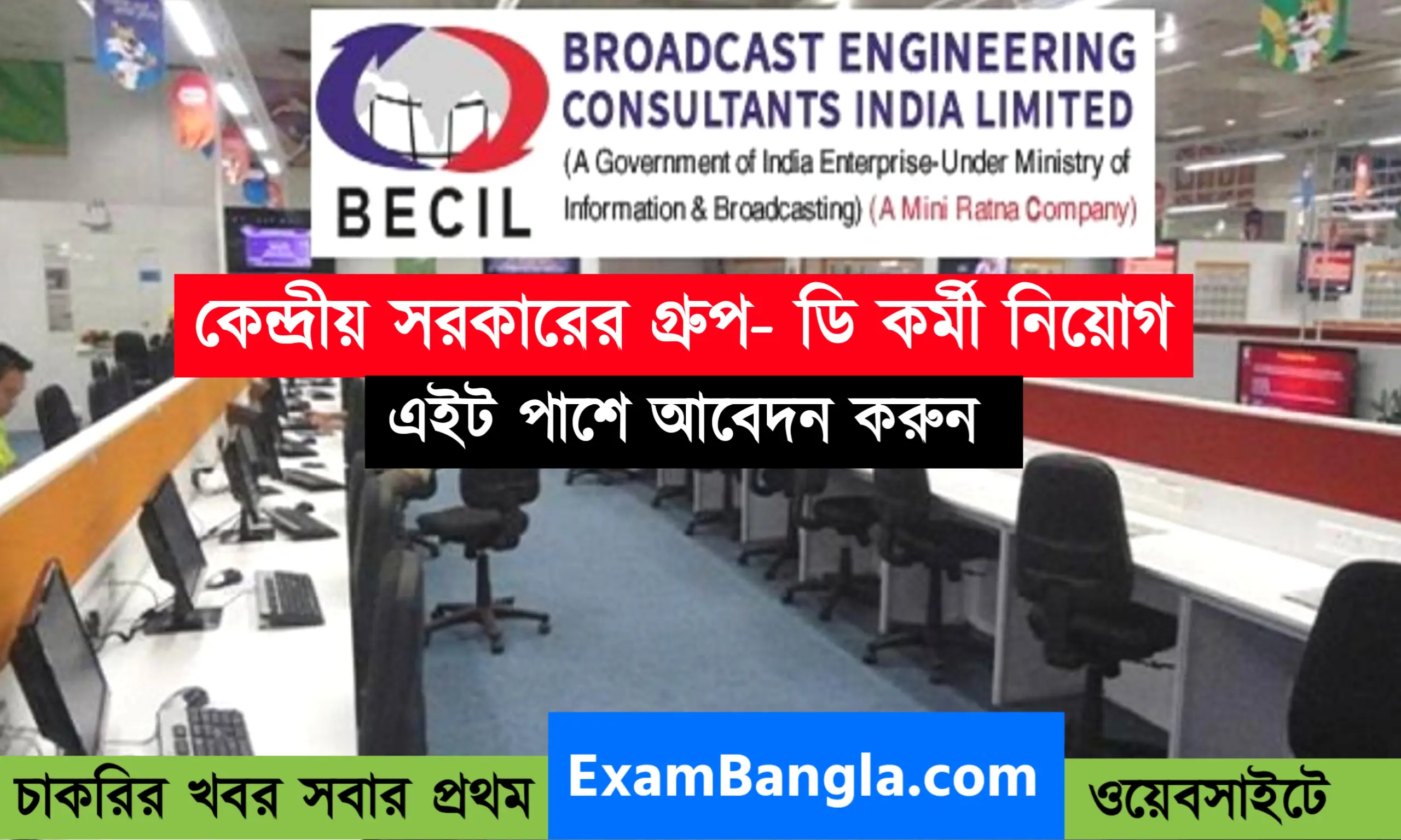 BECIL দপ্তরে গ্রূপ- ডি কর্মী নিয়োগ, অষ্টম শ্রেণী পাশে আবেদন করুন
