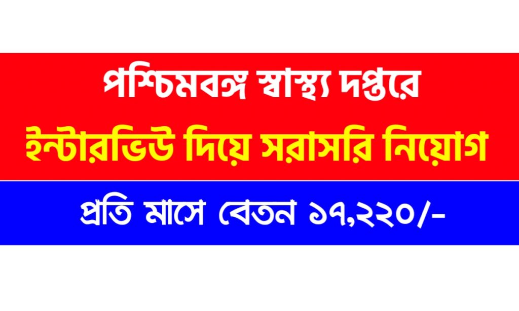 নির্বাচন পদ্ধতি- মোট নম্বর ১০০। শিক্ষাগত যোগ্যতা থেকে থাকবে ৯০ এবং ইন্টারভিউ তে ১০। দুটো মিলিয়ে মোট নম্বর এর উপর ভিত্তি করে প্রার্থী নির্বাচিত করা হবে। বিস্তারিত তথ্য জানতে www.wbhealth.gov.in এই ওয়েবসাইটে ভিজিট করুন।
