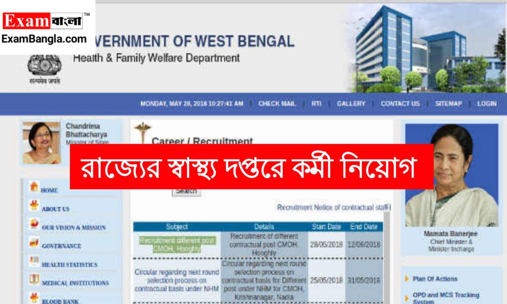 জাতীয় স্বাস্থ্য মিশনের মাধ্যমে রাজ্যের জেলা স্বাস্থ্য পরিবার কল্যাণ দপ্তরের তরফে উচ্চ মাধ্যমিক পাশ সহ বিভিন্ন শিক্ষাগত যোগ্যতায় কর্মী নিয়োগের বিজ্ঞপ্তি প্রকাশ করা হয়েছে। যেকোনো ভারতীয় নাগরিক অর্থাৎ পশ্চিমবঙ্গের যেকোনো জেলার প্রার্থীরা এখানে আবেদন করতে পারবেন। আবেদন পদ্ধতি শিক্ষাগত যোগ্যতা সহ বিস্তারিত জানতে নিচে রইলো আজকের এই প্রতিবেদন।