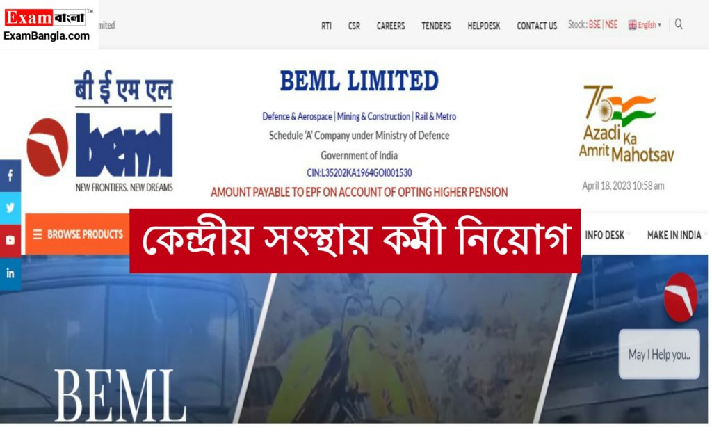 আবেদন পদ্ধতি – ইচ্ছুক প্রার্থীদের সম্পূর্ণ অনলাইনের মাধ্যমে করতে হবে। আবেদন করার জন্য প্রার্থীদের সংস্থার অফিসিয়াল ওয়েবসাইটে (www.bemlindia.in) গিয়ে, “Apply ON-LINE” উইন্ডো থেকে আবেদন প্রক্রিয়া সম্পন্ন করতে হবে।