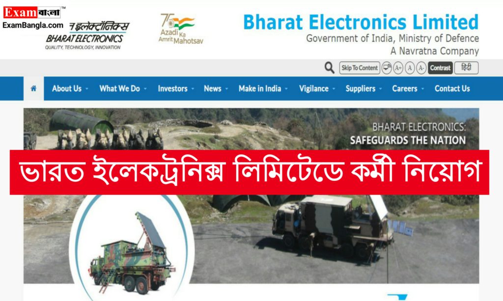 কেন্দ্রীয় সরকারের প্রতিরক্ষা মন্ত্রকের অধীনস্থ ভারত ইলেকট্রনিক্স লিমিটেড সংস্থার পক্ষ থেকে তাদের অফিসিয়াল ওয়েবসাইটে সম্প্রতি একটি কর্মী নিয়োগের বিজ্ঞপ্তি প্রকাশ করা হয়েছে। যেকোনো ভারতীয় নাগরিক পশ্চিমবঙ্গের যেকোনো জেলা থেকে এই শূন্যপদে চাকরির জন্য আবেদন করতে পারবেন। শিক্ষাগত যোগ্যতা, আবেদন পদ্ধতি, মাসিক বেতন ইত্যাদি বিস্তারিত তথ্য উল্লেখ করা হলো আজকের প্রতিবেদন।