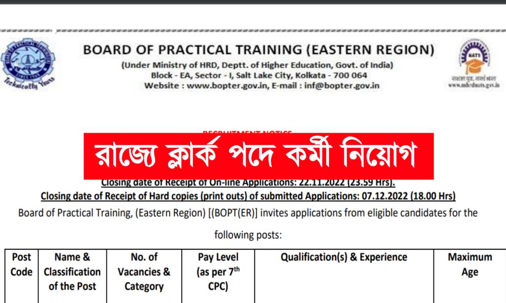 আবেদনের ঠিকানা- Broad of Practical Training (Eastern Region), Block-EA, Sector-I, Salt Lake City, Kolkata-700064