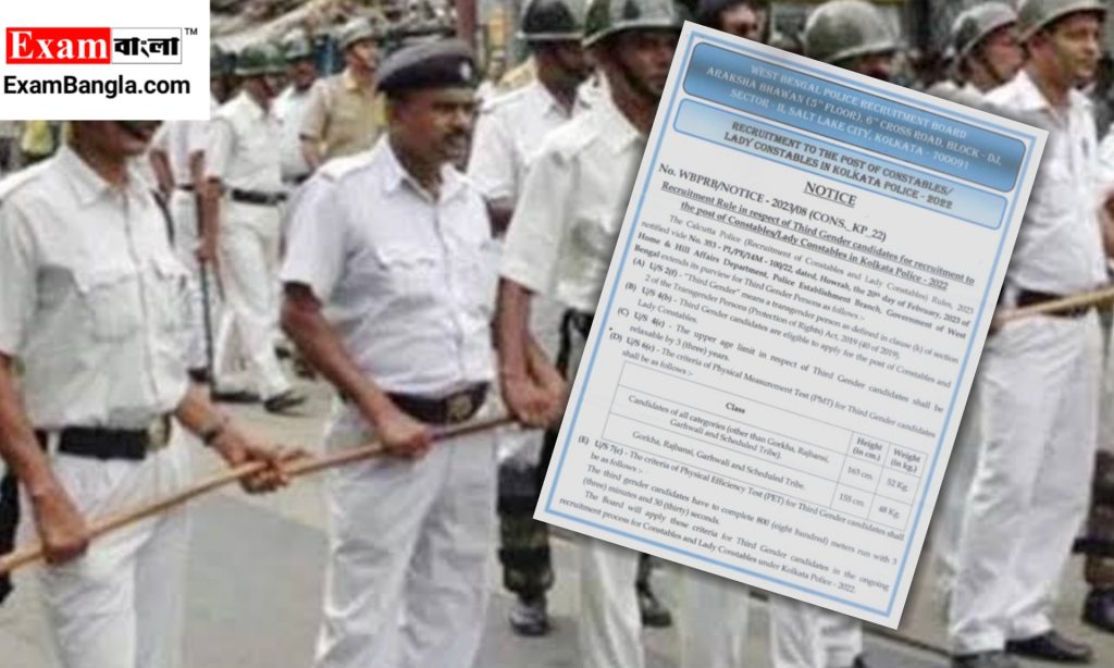 সম্প্রতি জানানো হয়েছিল কলকাতা পুলিশের কনস্টেবল পদে নিয়োগ দেওয়া হবে তৃতীয় লিঙ্গের প্রার্থীদের। আর এবার নিয়োগ সংক্রান্ত নিয়মাবলী প্রকাশ করলো পশ্চিমবঙ্গ পুলিশ রিক্রুটমেন্ট বোর্ড তথা WBPRB। অফিসিয়াল ওয়েবসাইটে বিজ্ঞপ্তির মাধ্যমে জানানো হয়েছে এ বিষয়ে বিস্তারিত।