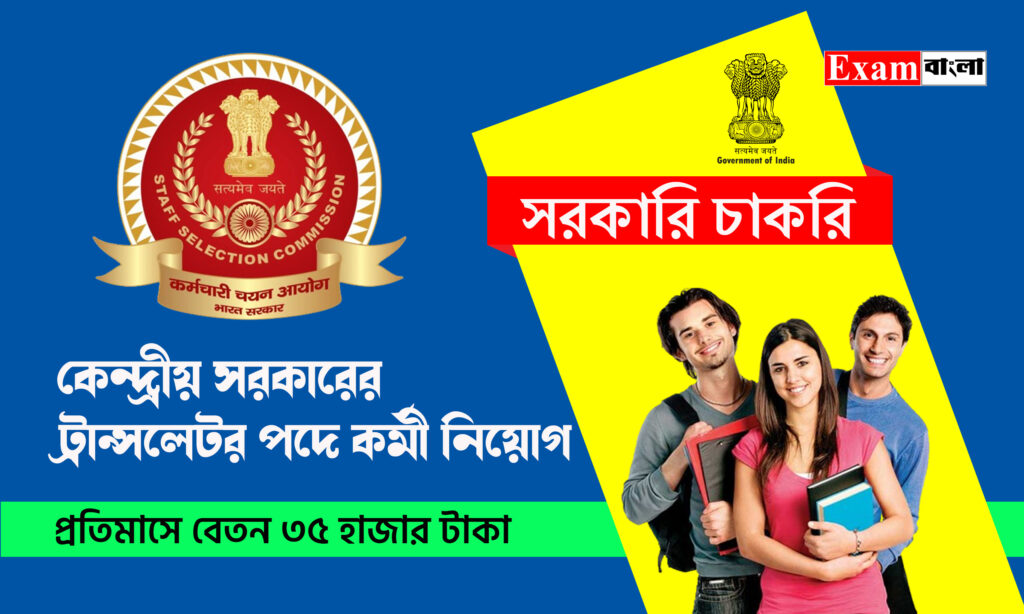 রাজ্যের চাকরিপ্রার্থীদের জন্য বিরাট বিরাট সুখবর। কেন্দ্রীয় সরকারের ট্রান্সলেটর পদে কর্মী নিয়োগের জন্য নতুন বিজ্ঞপ্তি প্রকাশ করল স্টাফ সিলেকশন কমিশন (SSC)। ভারত সরকারের কর্মী, জনঅভিযোগ ও পেনশন মন্ত্রণালয়ের অনুমোদনে এই চাকরির বিজ্ঞপ্তি প্রকাশ করা হয়েছে। সারা ভারবর্ষের সঙ্গে পশ্চিমঙ্গের চাকরিপ্রার্থীরাও এখানে আবেদন জানাতে পারবেন। আগ্রহী প্রার্থীকে পশ্চিমঙ্গের যে কোনো জেলার স্থায়ী বাসিন্দা হতে হবে। পুরুষ এবং মহিলা উভয় প্রার্থীরাই এখানে আবেদনযোগ্য। আবেদন পদ্ধতি, বয়সসীমা, শিক্ষাগত যোগ্যতা, আবেদনের শেষ তারিখ সহ অন্যান্য বিস্তারিত তথ্য আলোচনা করা হল আজকের প্রতিবেদনে।