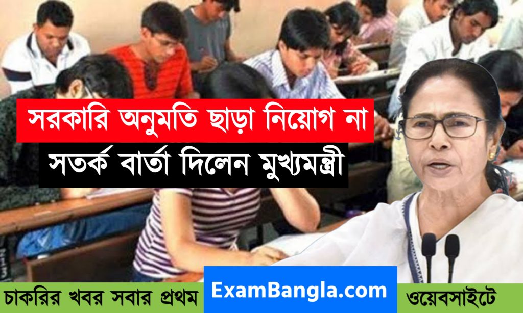 শিক্ষা দপ্তরের নিয়োগ নিয়ে দুর্নীতির অভিযোগে রাজ্যের হাইকোর্টে মামলা চলছে। রাজ্যের বড় বড় রাঘববোয়ালরা মামলার জেরে সিবিআইয়ের হেফাজতে রয়েছেন। এই পরিস্থিতিতে শিক্ষা দফতরের নিয়োগ নিয়ে রাজ্যের মুখ্যমন্ত্রী এদিন শিক্ষামন্ত্রীর উদ্দেশ্যে সর্তকের বার্তা দিলেন। তিনি এদিন বলেন, অর্থ দফতরের অনুমতি ছাড়া অস্থায়ী কিংবা চুক্তিভিত্তিক কোনোরূপ নিয়োগ না করার। অর্থাৎ সরাসরি অনুমতি ছাড়া নিয়োগে “না” মুখ্যমন্ত্রীর।