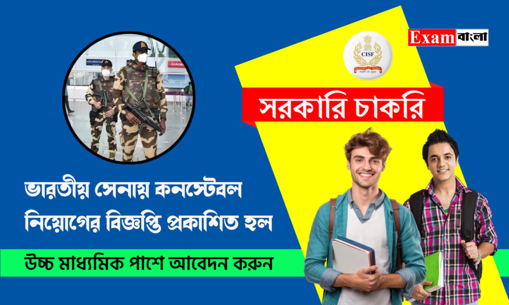 রাজ্যের চাকরিপ্রার্থীদের জন্য সুখবর। যে সমস্ত চাকরিপ্রার্থীরা ভারতীয় সেনার বিভিন্ন বিভাগে চাকরি করতে ইচ্ছুক তাদের জন্য দারুণ সুযোগ। ভারতীয় সেনার সেন্ট্রাল ইন্ডাস্ট্রিয়াল সিকিউরিটি ফোর্স বিভাগের পক্ষ থেকে কনস্টেবল পদে নিয়োগের জন্য নতুন বিজ্ঞপ্তি প্রকাশ করা হয়েছে। যে কোনো ভারতীয় নাগরিক অর্থাৎ পশ্চিমবঙ্গের প্রতিটি জেলার চাকরিপ্রার্থীরা এখানে আবেদন জানাতে পারবেন। এই নিয়োগ কেবলমাত্র পুরুষ চাকরিপ্রার্থীদের জন্য। আবেদন পদ্ধতি, বয়সসীমা, মাসিক বেতন এবং আবেদনের শেষ তারিখ সহ অন্যান্য গুরুত্বপূর্ণ তথ্যগুলি আলোচনা করা হলো আজকের প্রতিবেদনে।