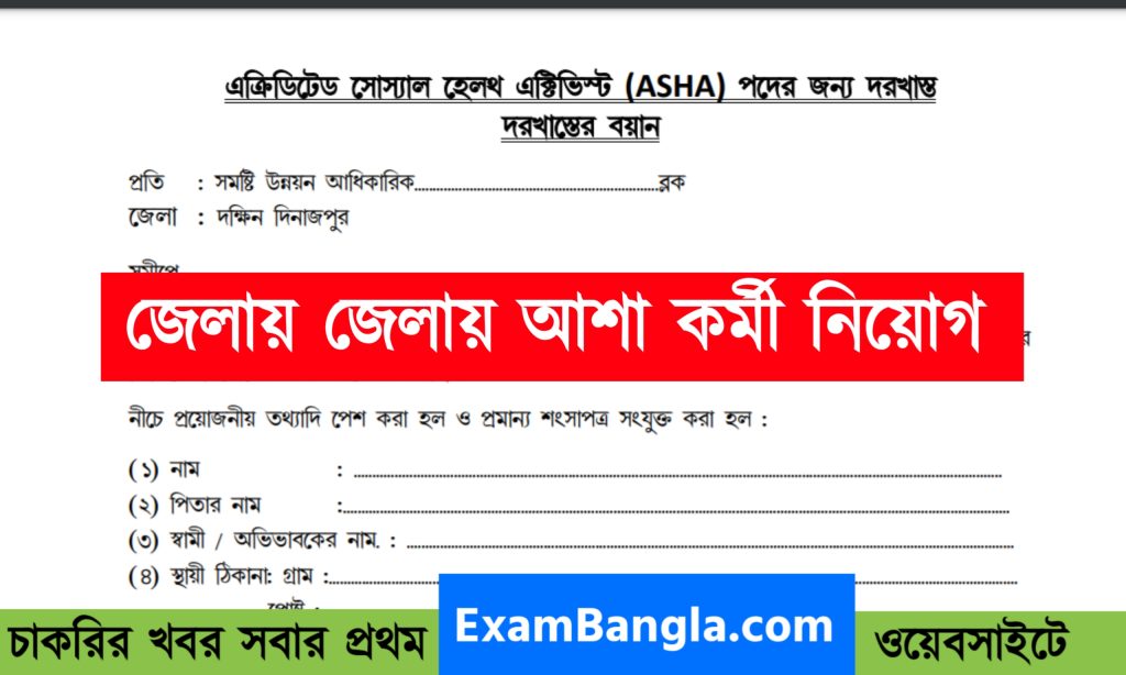 পদের নাম- আশা কর্মী।