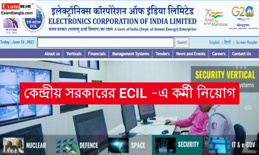 ইলেক্ট্রনিক্স কর্পোরেশন অফ ইন্ডিয়া লিমিটেড (ECIL) সম্প্রতি তাদের অফিসিয়াল ওয়েবসাইটে একটি নিয়োগ বিজ্ঞপ্তি প্রকাশ করেছে। ভারত সরকারের ECIL -এ কর্মী নিয়োগ হবে বিভিন্ন শূন্যপদে। ভারতের যেকোনো নাগরিক পশ্চিমবঙ্গের যেকোনো জেলা থেকে এই পদগুলিতে চাকরির জন্য আবেদন করতে পারবেন। শিক্ষাগত যোগ্যতা, আবেদন পদ্ধতি, বয়সসীমা ইত্যাদি বিস্তারিত তথ্য উল্লেখ করা হল আজকের এই প্রতিবেদনে।