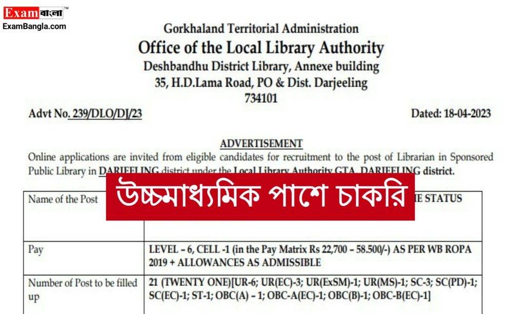 আবেদন পদ্ধতি – এই পদে আবেদন করার জন্য চাকরিপ্রার্থীদের সম্পূর্ণ অনলাইনের মাধ্যমে আবেদন করতে হবে। অনলাইনে আবেদন করার জন্য চাকরিপ্রার্থীদের অবশ্যই সংস্থার নির্দিষ্ট ইমেইল এড্রেস -এ (reclibdarjeeling23@gmail.com) আবেদনপত্র সহ অন্যান্য বাকি সব গুরুত্বপূর্ণ তথ্যের স্ক্যান্ড কপি ইমেইল করে পাঠাতে হবে।