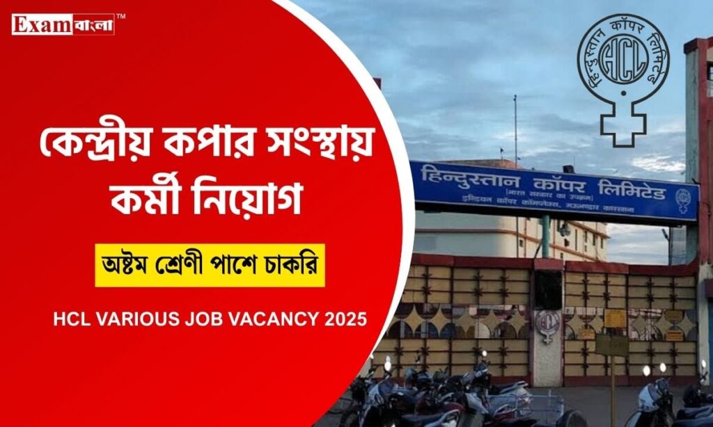 HCL Recruitment 2025: মাধ্যমিক যোগ্যতায় চাকরিপ্রার্থীদের জন্য দুর্দান্ত কাজের সুযোগ করে দিচ্ছে রাষ্ট্রায়ত্ত সংস্থা হিন্দুস্তান কপার লিমিটেড। বর্তমানে ভারতবর্ষে বিপুল পরিমাণে যুবক-যুবতী একটি সরকারি চাকরির জন্য প্রচেষ্টা চালিয়ে যাচ্ছেন। অথচ আজকের দিনে দাঁড়িয়ে সরকারি হোক কিংবা বেসরকারি সব জায়গাতেই প্রয়োজন একটি যথাযথ অভিজ্ঞতার। আর ঠিক সেই কারণেই কেন্দ্রীয় সরকারের পক্ষ থেকে চাকরি প্রার্থীদের কর্ম দক্ষতা গড়ে তোলার উদ্দেশ্যে অ্যাপ্রেন্টিস আইন ১৯৬১ অনুসারে বিভিন্ন দপ্তরে কর্মী নিয়োগ হয়ে থাকে। এবারেও হিন্দুস্তান কপার লিমিটেড এর তরফে কেন্দ্রীয় অ্যাপ্রেন্টিস আইনের অন্তর্গত শিক্ষানবিশ পদে যোগ্য প্রার্থীদের নিয়োগ করা হবে। এই নিয়োগ সম্পর্কিত গুরুত্বপূর্ণ তথ্যগুলি জানতে পারবেন EXAM BANGLA র আজকের প্রতিবেদন থেকে।