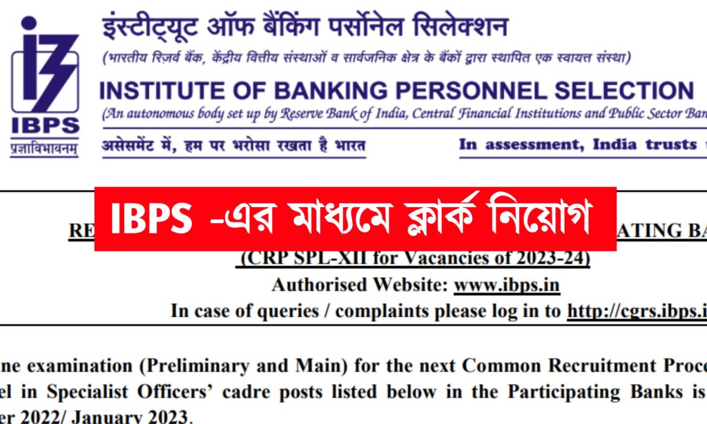 ইনস্টিটিউট অফ ব্যাংকিং পার্সোনাল সিলেকশন (IBPS) -এর তরফে মার্কেটিং অফিসার, Law অফিসার সহ বিভিন্ন পদে নিয়োগের বিজ্ঞপ্তি প্রকাশ করা হয়েছে। যেকোনো ভারতীয় নাগরিক অর্থাৎ পশ্চিমবঙ্গের যেকোনো জেলার প্রার্থীরা আবেদন করতে পারবেন। আবেদন পদ্ধতি শিক্ষাগত যোগ্যতা সহ বিস্তারিত জানতে নিচে রইলো আজকের এই প্রতিবেদন।
