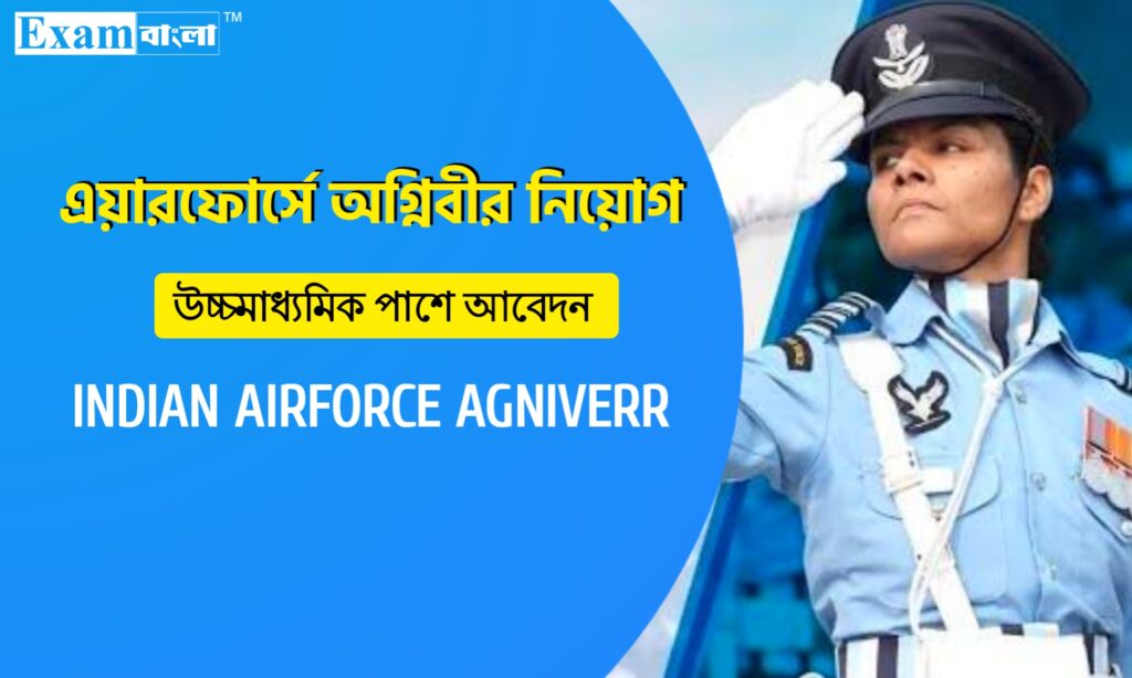 ইন্ডিয়ান এয়ার ফোর্সের তরফ থেকে একটি বিজ্ঞপ্তি প্রকাশ করা হয়েছে। যেখানে অগ্নিবীর প্রকল্পের মাধ্যমে ইন্ডিয়ান এয়ার ফোর্সে কর্মী নিয়োগ করা হচ্ছে। ভারতের যেকোন রাজ্য অথবা যেকোন জেলার প্রার্থীরা এখানে আবেদন করতে পারবেন। পুরুষ ও মহিলা উভয় প্রার্থী এই পদের জন্য আবেদন করতে পারবেন। এই পদে আবেদনের শিক্ষাগত যোগ্যতা থেকে শুরু করে আবেদনের শেষ তারিখ ,বয়স ইত্যাদি জানতে প্রতিবেদনটি শেষ পর্যন্ত পড়ুন।