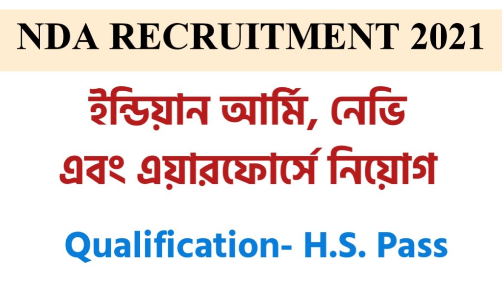 ন্যাশনাল ডিফেন্স একাডেমী নিয়োগের মাধ্যমে ইন্ডিয়ান আর্মি, ইন্ডিয়ান নেভি এবং ইন্ডিয়ান এয়ারফোর্স -এ নিয়োগের বিজ্ঞপ্তি প্রকাশিত হয়েছে। পদগুলিতে আবেদন করার জন্য শিক্ষাগত যোগ্যতা হতে হবে উচ্চ মাধ্যমিক পাশ। নিয়োগ প্রক্রিয়া পরিচালনা করবে ইউনিয়ন পাবলিক সার্ভিস কমিশন। বিজ্ঞপ্তি নং