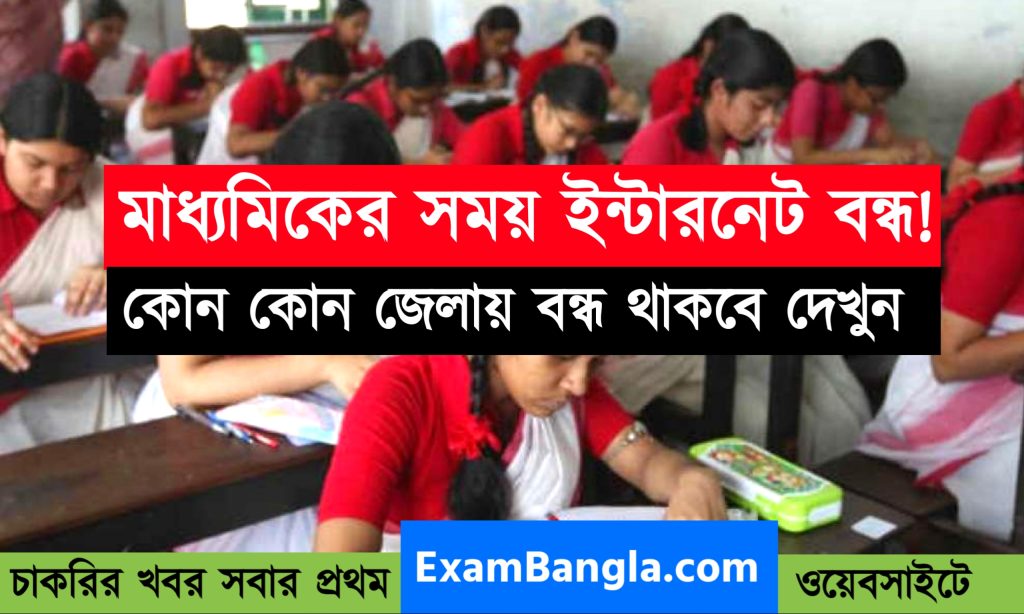 মাধ্যমিক পরীক্ষা কেন্দ্র সংলগ্ন এলাকায় ইন্টারনেট বন্ধ থাকবে বিভিন্ন স্পর্শকাতর এলাকাগুলোতে। যে সমস্ত জেলায় ইন্টারনেট পরিষেবা বন্ধ থাকবে সেগুলো দুই ২৪ পরগনা, বীরভূম, মালদা ও মুর্শিদাবাদ। অর্থাৎ এইসব জেলাগুলির বিভিন্ন এলাকায় পরীক্ষা চলাকালীন ইন্টারনেট পরিষেবা বন্ধ থাকবে। পশ্চিমবঙ্গ মধ্যশিক্ষা পর্ষদের সভাপতি ইন্টারনেট পরিষেবা বন্ধ থাকার ব্যাপারে ঘোষণা করেছেন। তবে তিনি এও জানান, ইন্টারনেট পরিষেবা বন্ধ থাকার ব্যাপার পুরোটাই প্রশাসনের উপর নির্ভরশীল।