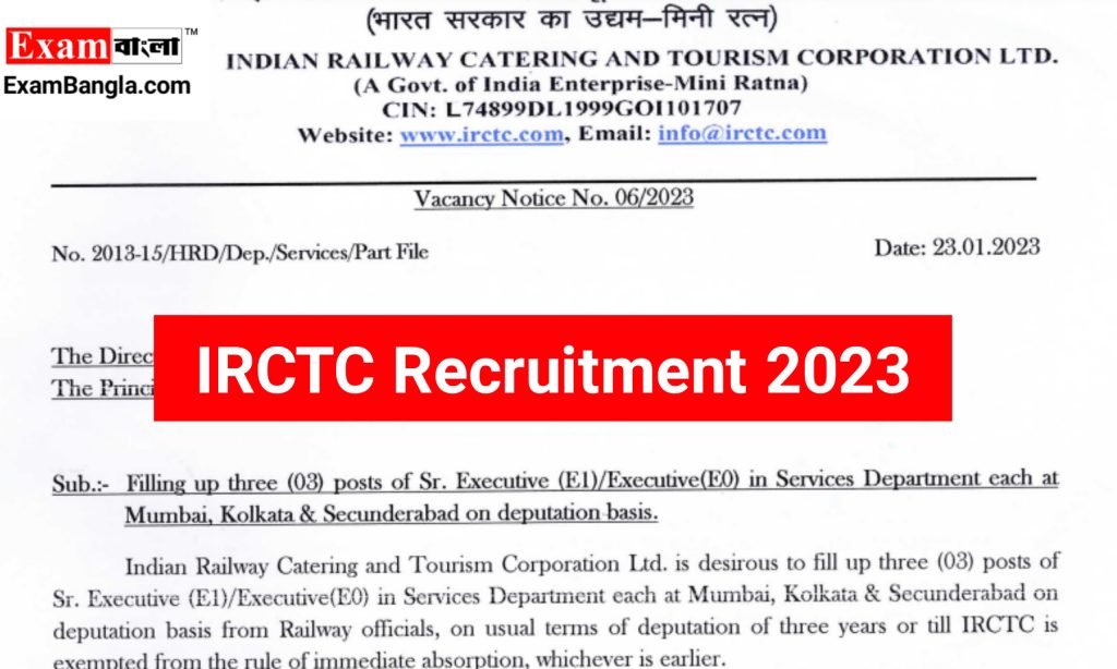 কেন্দ্রীয় সরকারের ইন্ডিয়ান রেলওয়ে ক্যাটারিং এন্ড ট্যুরিজম কর্পোরেশন লিমিটেডে এক্সজিকিউটিভ পদে কর্মী নিয়োগের বিজ্ঞপ্তি প্রকাশ করা হয়েছে হয়েছে। যেকোনো ভারতীয় নাগরিক অর্থাৎ পশ্চিমবঙ্গের যেকোনো জেলার প্রার্থীরা এখানে আবেদন করতে পারবেন। আবেদন পদ্ধতি শিক্ষাগত যোগ্যতা সহ বিস্তারিত জানতে নিচে রইলো আজকের এই প্রতিবেদন।