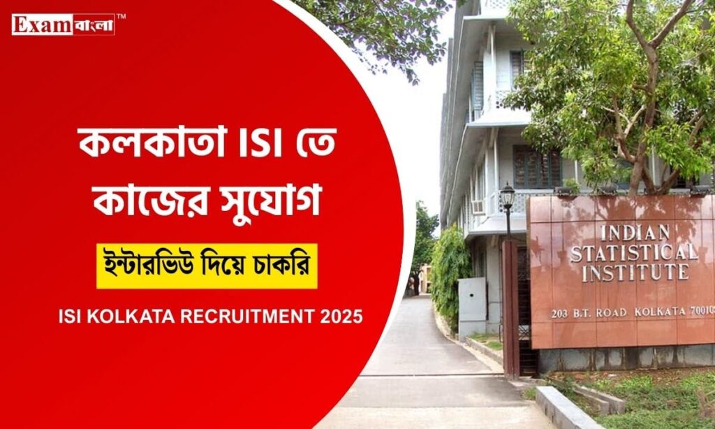 ISI Kolkata Recruitment: ইন্ডিয়ান স্ট্যাটিসটিক্যাল ইনস্টিটিউটে সরাসরি ইন্টারভিউ এর মাধ্যমে আগ্রহী চাকরিপ্রার্থী নিয়োগ করা হবে। মূলত বিভিন্ন প্রজেক্ট এর কাজের কারণে প্রজেক্ট লিংক পারসন পদে এই নিয়োগটি হতে চলেছে। যে সমস্ত চাকরিপ্রার্থীদের যথাযথ যোগ্যতা রয়েছে তারা অনায়াসেই ইন্টারভিউয়ের দিন সরাসরি পৌঁছে যেতে পারেন সংস্থার ঠিকানায়। কলকাতায় চাকরি করতে আগ্রহী প্রার্থীরা যোগ্যতা এবং আবেদনের নিয়ম সঠিকভাবে বুঝে নেওয়ার জন্য অবশ্যই শেষ পর্যন্ত দেখুন আজকের প্রতিবেদনটি।