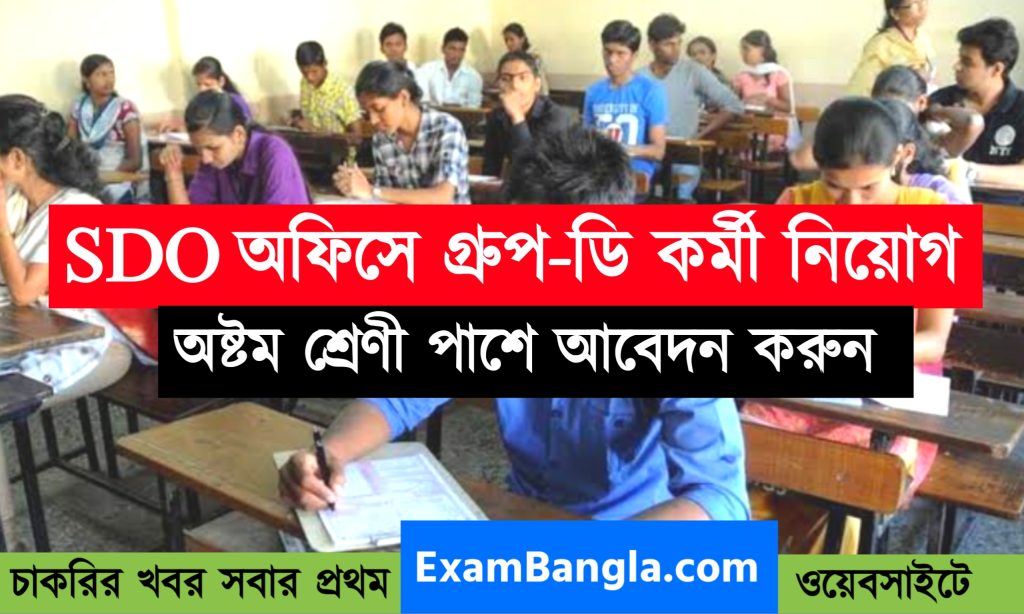পশ্চিমবঙ্গ সরকার অধীনস্থ সাব ডিভিশনাল অফিসে গ্রুপ- ডি পদে কর্মী নিয়োগের বিজ্ঞপ্তি প্রকাশিত হয়েছে। ন্যূনতম অষ্টম শ্রেণী পাশ শিক্ষাগত যোগ্যতায় আবেদন করতে পারবেন। সমস্ত ভারতীয় নাগরিক অর্থাৎ পশ্চিমবঙ্গের যেকোনো জেলা থেকে প্রার্থীরা আবেদন করতে পারবেন। কোন পদে নিয়োগ করা হবে, শিক্ষাগত যোগ্যতা, নিয়োগের স্থান এবং আরও অন্যান্য তথ্য সহ রইল আজকের এই প্রতিবেদন।
