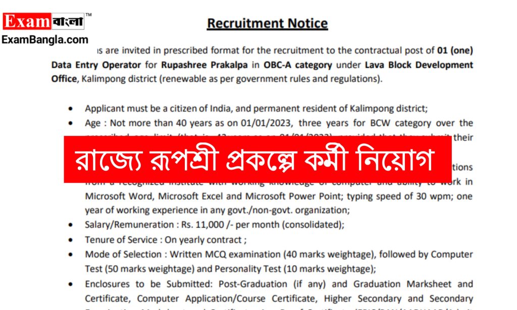 আবেদনপত্র জমা দেওয়ার ঠিকানা– Rupashree Section, Office of the District Magistrate, Kalimpong, Frist Floor, Kalimpong, Pin- 734301