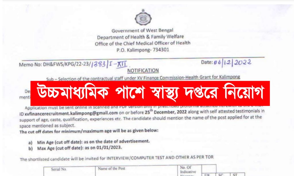 আবেদনপত্র জমা দেওয়ার ঠিকানা- The Member Secretary, Selection Committee & Chief Medical Officer Of Health, Kalimpong-734301