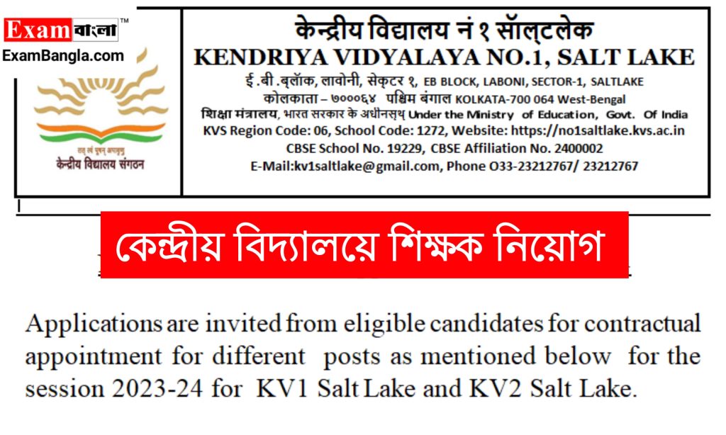 রাজ্যের কেন্দ্রীয় বিদ্যালয় স্কুলে টিচিং ও নন টিচিং স্টাফ নিয়োগের বিজ্ঞপ্তি প্রকাশ করা হয়েছে। যেকোনো ভারতীয় নাগরিক অর্থাৎ পশ্চিমবঙ্গের যেকোনো জেলার প্রার্থীরা এখানে আবেদন করতে পারবেন। আবেদন পদ্ধতি শিক্ষাগত যোগ্যতা সহ বিস্তারিত জানতে নিচে রইলো আজকের এই প্রতিবেদন।