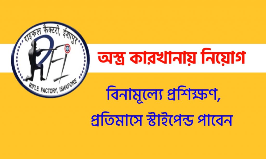 পশ্চিমবঙ্গের চাকরি প্রার্থীদের জন্য বিরাট সুখবর! কলকাতার অস্ত্র কারখানায় সম্পূর্ণ বিনামূল্যে প্রশিক্ষণ বা ট্রেনিংয়ের জন্য বিজ্ঞপ্তি প্রকাশ করা হয়েছে। এবং ট্রেনিং চলাকালীন প্রতিমাসে স্টাইপেন্ড দেওয়া হবে। পশ্চিমবঙ্গের যেকোন জেলা থেকে পুরুষ মহিলা উভয়ই আবেদন করতে পারবেন। তবে নির্দিষ্ট কয়েকটি জেলার ক্ষেত্রে আবেদনকারীরা বাড়তি সুযোগ পাবেন। যদি আপনারা আবেদনে আগ্রহী হয়ে থাকেন এই পোস্ট টি মনোযোগ সহকারে পড়ুন, তারপরেই আবেদন করুন। Kolkata Rifle Factory Recruitment 2021.