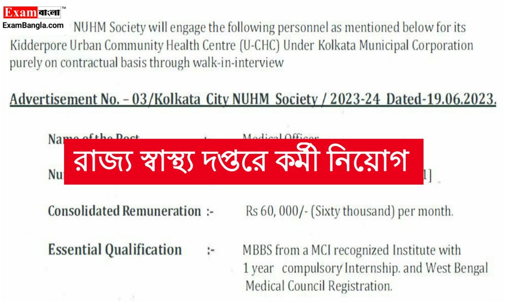 Employment No.- 03/Kolkata City NUHM Society/ 2023-24