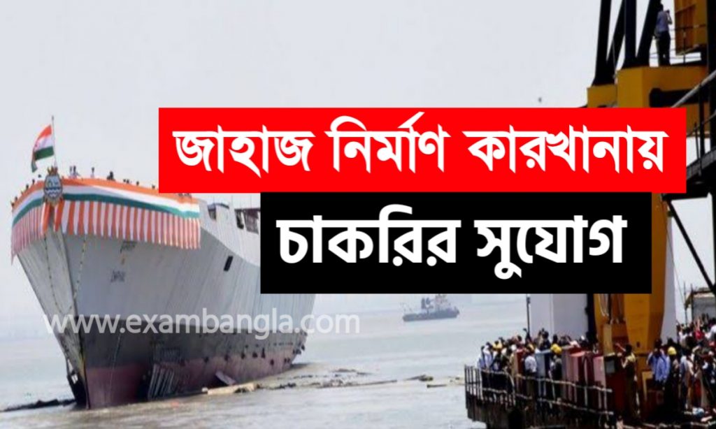 মাধ্যমিক, অষ্টম শ্রেণী পাশ, ITI পাশ সহ বিভিন্ন যোগ্যতায় ভারত সরকারের জাহাজ নির্মাণ কারখানায় বিভিন্ন পদে কর্মী নিয়োগের বিজ্ঞপ্তি প্রকাশিত হয়েছে। মোট শূন্যপদ ১৩৮৮ টি। নিয়োগ করা হবে MAZAGON DOCK SHIPBUILDERS LIMITED -এ। মাজাগণ ডক বিল্ডার্স লিমিটেড হলো ভারত সরকারের অধীনস্থ একটি সংস্থা। পশ্চিমবঙ্গের যেকোন জেলা থেকেই আবেদন করতে পারবেন।