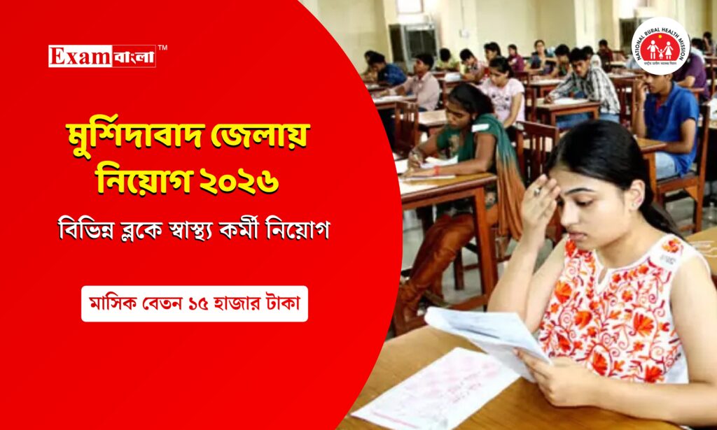 ন্যাশনাল হেলথ মিশন (NHM) এর অধীনে মুর্শিদাবাদ জেলার বিভিন্ন ব্লক এলাকায় স্বাস্থ্য বিভাগে গ্রুপ- সি কর্মী নিয়োগ করার বিজ্ঞপ্তি প্রকাশিত হয়েছে। নারী-পুরুষ নির্বিশেষে যে কোন চাকরিপ্রার্থী আবেদন করতে পারবেন। নিয়োগের পর মাসে ১৫,০০০ টাকা বেতন দেওয়া হবে। আগ্রহী প্রার্থীদের জন্য প্রয়োজনীয় শিক্ষাগত যোগ্যতা, আবেদন প্রক্রিয়া, গুরুত্বপূর্ণ তারিখ নিয়ে নীচে বিস্তারিত আলোচনা করা হলো।