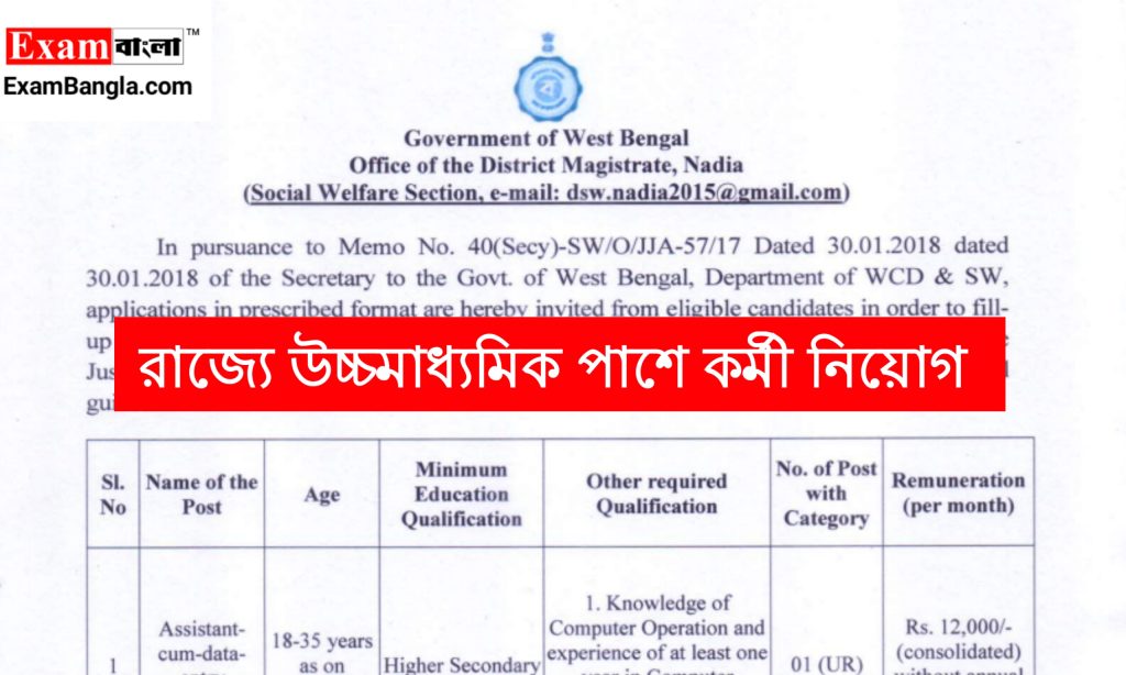 শিক্ষাগত যোগ্যতা- যেকোনো স্বীকৃত বোর্ড থেকে উচ্চমাধ্যমিক পাশ সহ কম্পিউটার কাজের অভিজ্ঞতা কাজের অভিজ্ঞতা থাকলে আবেদন করতে পারবেন।
