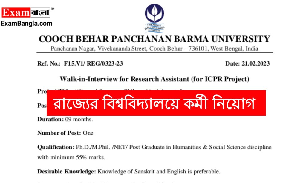 শিক্ষাগত যোগ্যতা- যেকোনো শিক্ষাপ্রতিষ্ঠান থেকে Humanities & Social Science -এ ৫৫ শতাংশ নম্বর নিয়ে Ph.D./ M.Phil./ NET/ Post Graduate করা থাকলে আবেদন করতে পারবেন।