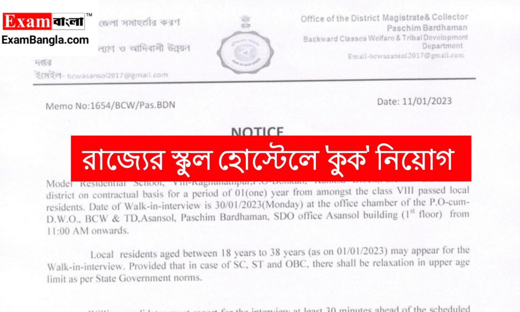 ইন্টারভিউয়ের স্থান- Office Chember of P.O Cum-D.W.O…BCW & TD, Asansol, Paschim Bardhaman, SDO Office, Asansol Building (1st Floor)
