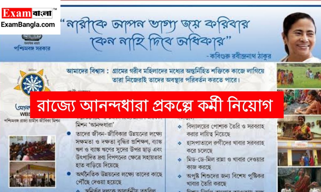 ডিস্ট্রিক্ট মিশন ম্যানেজমেন্ট ইউনিট এন্ড রুরাল ডেভেলপমেন্টের মাধ্যমে রাজ্যে আনন্দধারা প্রকল্পে কর্মী নিয়োগের বিজ্ঞপ্তি প্রকাশ করা হয়েছে। কোন লিখিত পরীক্ষা ছাড়াই সরাসরি ইন্টারভিউ মাধ্যমে কর্মী নিয়োগ করা হবে। আবেদন পদ্ধতি শিক্ষাগত যোগ্যতা সহ বিস্তারিত জানতে নিচে রইলো আজকের এই প্রতিবেদন।