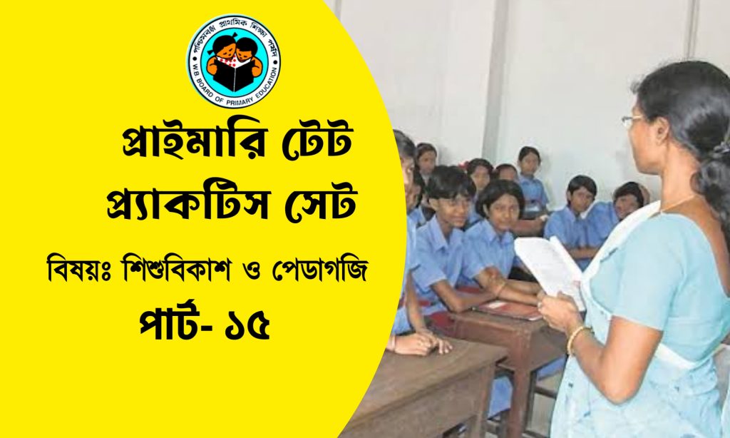 আপনি কি Primary TET 2022 পরীক্ষার জন্য প্রস্তুতি নিচ্ছেন? তাহলে Exam Bangla আপনার জন্য নিয়ে এসেছে শিশুবিকাশ ও পেডাগজি বিষয়ের ১৫ টি গুরুত্বপূর্ণ প্র্যাকটিস সেট। যা আগত প্রাইমারি টেট পরীক্ষার জন্য গুরুত্বপূর্ণ। Team Exam Bangla -র অভিজ্ঞ শিক্ষকদের দ্বারা এই প্রশ্নোত্তর গুলি প্রস্তুত করা হয়েছে। প্রতিটি প্রশ্নের শেষে সঠিক উত্তর দেওয়া হয়েছে, যাতে পরীক্ষার্থীদের সুবিধা হয়। আমরা আশাবাদী রাজ্যের সমস্ত Primary TET 2022 পরীক্ষার্থীদের জন্য Exam Bangla -র এই উদ্যোগ খুব উপকারী হবে। Primary TET Practice Set PDF Download.