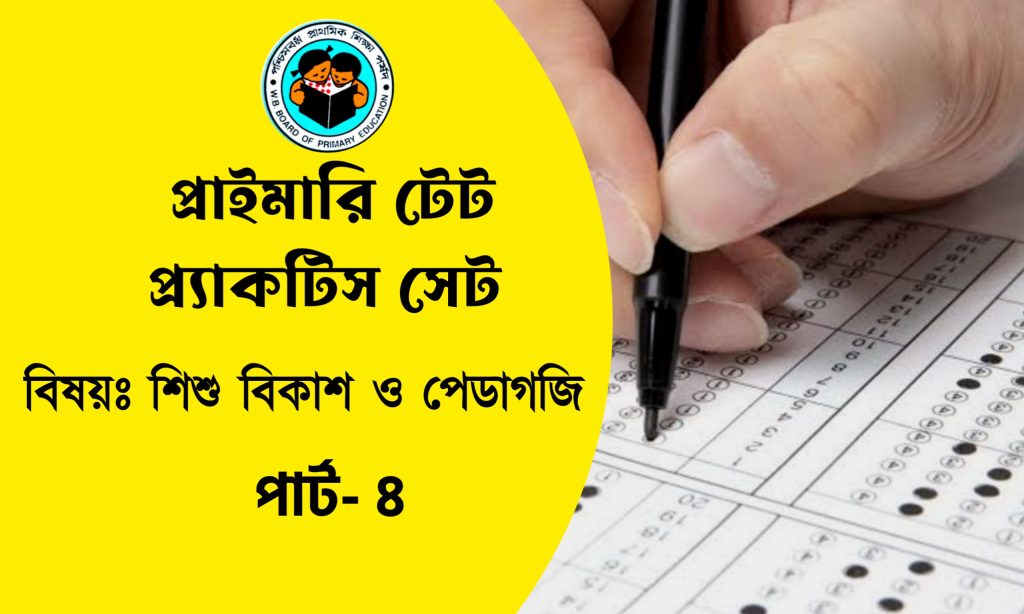 আপনি কি Primary TET 2022 পরীক্ষার জন্য প্রস্তুতি নিচ্ছেন? তাহলে Exam Bangla আপনার জন্য নিয়ে এসেছে শিশুবিকাশ ও পেডাগজি বিষয়ের ১৫ টি গুরুত্বপূর্ণ প্র্যাকটিস সেট। যা আগত প্রাইমারি টেট পরীক্ষার জন্য গুরুত্বপূর্ণ। Team Exam Bangla -র অভিজ্ঞ শিক্ষকদের দ্বারা এই প্রশ্নোত্তর গুলি প্রস্তুত করা হয়েছে। প্রতিটি প্রশ্নের শেষে সঠিক উত্তর দেওয়া হয়েছে, যাতে পরীক্ষার্থীদের সুবিধা হয়। আমরা আশাবাদী রাজ্যের সমস্ত Primary TET 2022 পরীক্ষার্থীদের জন্য Exam Bangla -র এই উদ্যোগ খুব উপকারী হবে। Primary TET Practice Set PDF Download.