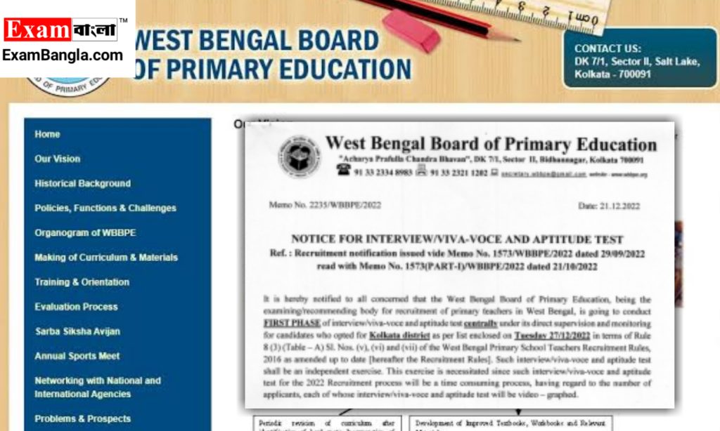 ২০১৪ ও ২০১৭ সালে আয়োজিত টেট পরীক্ষায় উত্তীর্ণ প্রার্থীদের প্রথম দফার ইন্টারভিউ নেওয়া হবে পর্ষদের তরফে। এর আগেই জানা গিয়েছিল শীঘ্রই ইন্টারভিউর তারিখ ঘোষণা করবে প্রাথমিক শিক্ষা পর্ষদ। এবার পর্ষদের তরফে বিজ্ঞপ্তি দিয়ে জানিয়ে দেওয়া হলো বিস্তারিত। পর্ষদের তরফে আগামী ২৭ শে ডিসেম্বর মঙ্গলবার ইন্টারভিউর দিন ঘোষণা করা হয়েছে। একইসাথে সংশ্লিষ্ট বিজ্ঞপ্তির সাথে ইন্টারভিউতে যাদের ডাকা হয়েছে, সেই সমস্ত প্রার্থীদের নাম ও রেজিস্ট্রেশন সহ বিস্তারিত তালিকা প্রকাশ করেছে পর্ষদ। ইন্টারভিউর দিন চাকরিপ্রার্থীদের যে যে গুরুত্বপূর্ণ নথি নিয়ে আসতে হবে তারও তালিকা প্রকাশ করা হয়েছে।