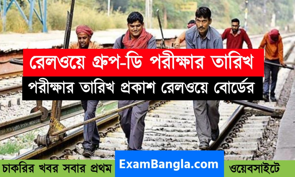 রেলওয়ে গ্রুপ- ডি (Group- D) চাকরির পরীক্ষার্থীদের জন্য বিশাল বড় সুখবর। RRB অর্থাৎ রেলওয়ে রিক্রুটমেন্ট বোর্ড, গ্রুপ- ডি চাকরির পরীক্ষার্থীদের জন্য এক বিশেষ বিজ্ঞপ্তি জারি করেছে। রেলওয়ে গ্রুপ- ডি চাকরির পরীক্ষার তারিখ ঘোষণা করলো ভারতীয় রেলওয়ে রিক্রুটমেন্ট বোর্ড। নীচে দেওয়া লিঙ্কে ক্লিক করে সরাসরি পৌঁছে যান, রেলওয়ে বোর্ডের অফিসিয়াল ওয়েবসাইটে। এবং দেখে নিন পরীক্ষার সময়সূচী।