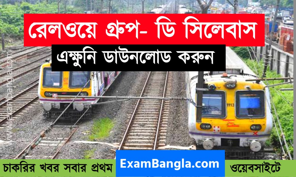 আগামী ২০২২ সালের ২৩ ফেব্রুয়ারী থেকে গোটা দেশ জুড়ে শুরু হতে চলেছে রেলওয়ে গ্রূপ-ডি পরীক্ষা। ইতিমধ্যেই পরীক্ষার্থীরা প্রস্তুতি শুরু করে দিয়েছে। তবে পরীক্ষা প্রস্তুতি শুরু করার আগে পরীক্ষার সিলেবাস জেনে নেওয়া অত্যন্ত জরুরি। তাই আজকের এই পোস্টে ExamBangla.com টিমের অভিজ্ঞ শিক্ষকদের দ্বারা রেলওয়ে গ্রূপ-ডি পরীক্ষার সিলেবাস, নম্বর বিভাজন, পরীক্ষার সময়সীমা সহ আরও একাধিক গুরুত্ত্বপূর্ণ তথ্য প্রকাশ করা হলো। পশ্চিমবঙ্গের চাকরিপ্রার্থীদের জন্য বাংলা ভাষায় এই সিলেবাস প্রকাশ করা হয়েছে। Railway Group- D full Syllabus 2022.