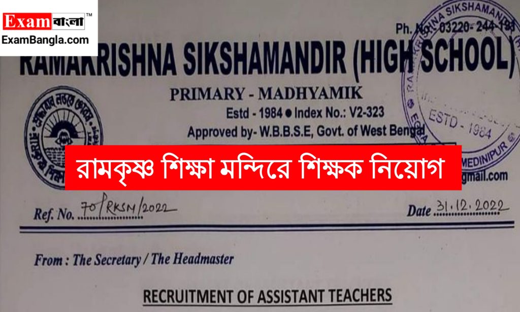 আবেদনপত্র জমা দেওয়ার ঠিকানা- Ramkrishna Sikhamandir (High school), Egra, Purba Medinipur
