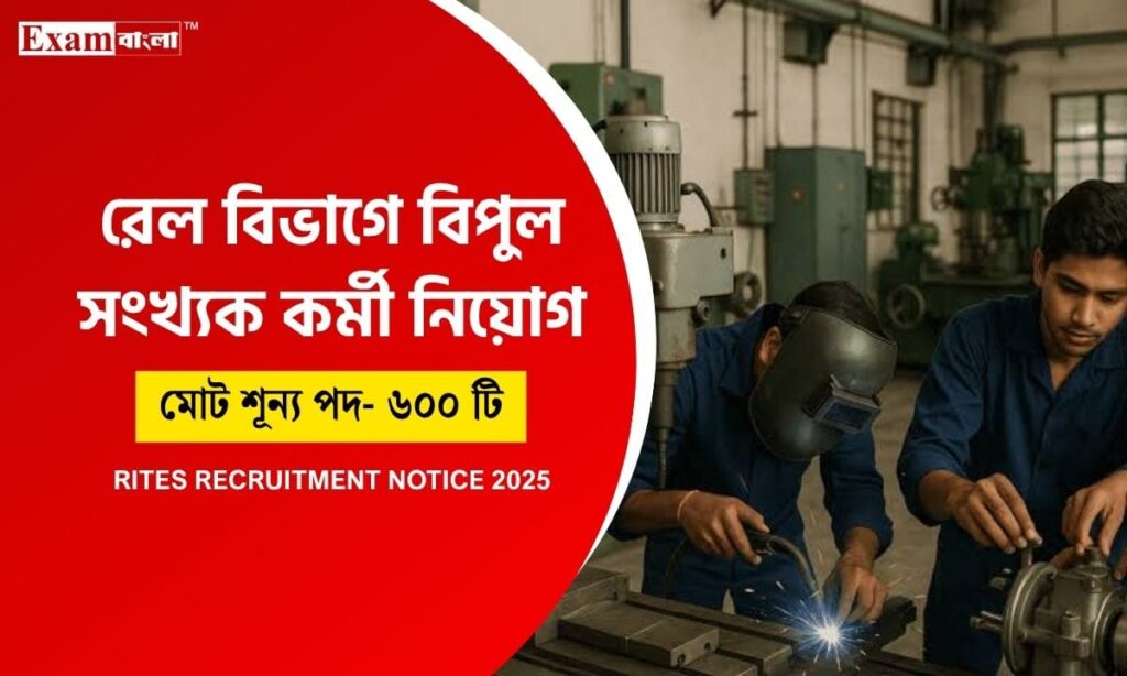 RITES Recruitment: ভারতীয় রেল মন্ত্রকের অন্তর্গত কেন্দ্রীয় সরকারি দপ্তরে আবারও নিয়োগের দুর্দান্ত সুযোগ রয়েছে চাকরিপ্রার্থীদের কাছে। রেলমন্ত্রকের অন্তর্গত RITES এর তরফ থেকে পশ্চিমবঙ্গ সহ ওটা ভারতবর্ষের বিভিন্ন রিজিয়ন অনুযায়ী চাকরিপ্রার্থীদের নিয়োগ করা হচ্ছে। বিপুল পরিমাণ শূন্য পদে বিভিন্ন যোগ্যতায় আবেদন জানানোর সুযোগ পাবেন এখানে। বর্তমানে বিভিন্ন কারণে দেশ জুড়ে বেকারত্বের হার বেড়েই চলেছে। বিশেষ করে অধিক পরিমাণে চাকরিপ্রার্থী সরকারি বিশেষত কেন্দ্রীয় সরকারি চাকরির জন্য অপেক্ষা করে থাকেন। তাদের জন্যই এবার দুর্দান্ত নিয়োগ বিজ্ঞপ্তি প্রকাশিত করল রেল মন্ত্রক। এই নিয়োগ বিজ্ঞপ্তি বিপদে জানতে অবশ্যই আজকের প্রতিবেদনটি শেষ পর্যন্ত পড়ুন।