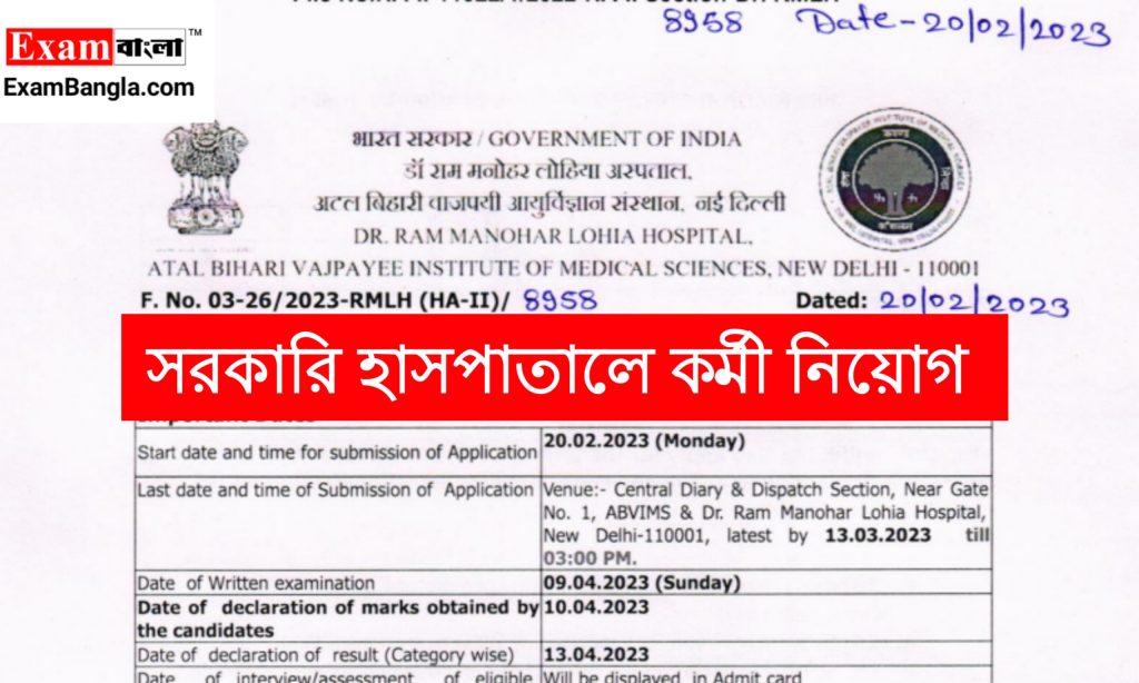 আবেদনপত্র জমা দেওয়ার ঠিকানা- Central Diary & Dispatch Section, Near Gate No. 3, ABVIMS & Dr. Ram Manohar Lohia Hospital, New Delhi- 110001