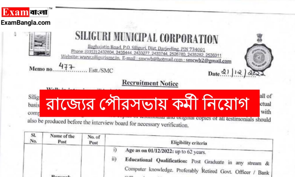ইন্টারভিউ স্থান- Conference Hall Of Siliguri Municipal Corporation