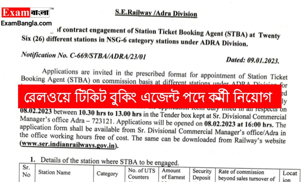 পদের নাম- স্টেশন টিকিট বুকিং এজেন্ট (STBA)