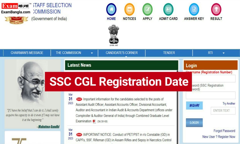 স্টাফ সিলেকশন কমিশন (SSC) এর তরফে আরম্ভ হলো কম্বাইন্ড গ্র্যাজুয়েট লেভেল একজামিনেশন (CGL) পরীক্ষার রেজিস্ট্রেশন প্রক্রিয়া। গত ৩রা এপ্রিল থেকে শুরু হওয়া এই রেজিস্ট্রেশন চলবে আগামী ৩মে ২০২৩ পর্যন্ত। নির্দিষ্ট সময়কালের মধ্যে অনলাইন মারফত আবেদন জানাতে পারবেন পরীক্ষার্থীরা। আবেদন জানানোর জন্য (ssc.nic.in) ওয়েবসাইটে যেতে হবে পরীক্ষার্থীদের।