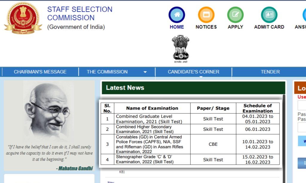 SSC Exam Date