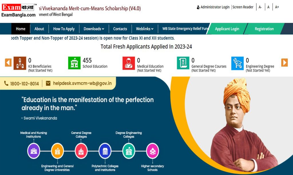 মেধাবী পড়ুয়াদের আর্থিক সহায়তার জন্য রাজ্য সরকারের তরফে বিভিন্ন স্কলারশিপ প্রদানের ব্যবস্থা রয়েছে। তার মধ্যে একটি স্বামী বিবেকানন্দ মেরিট কাম মিনস স্কলারশিপ। মাধ্যমিক ও উচ্চ মাধ্যমিক পাশে এই স্কলারশিপের জন্য আবেদন জানাতে পারেন পড়ুয়ারা। দুই পরীক্ষার ফলাফল বেরিয়েছে বেশ কিছু দিন হল। আর এবার সংশ্লিষ্ট স্কলারশিপের আবেদন গ্রহণ শুরু হল রাজ্যে। স্বামী বিবেকানন্দ মেরিট কাম মিনস স্কলারশিপে কিভাবে আবেদন জানাবেন, আসুন জেনে নেওয়া যাক।