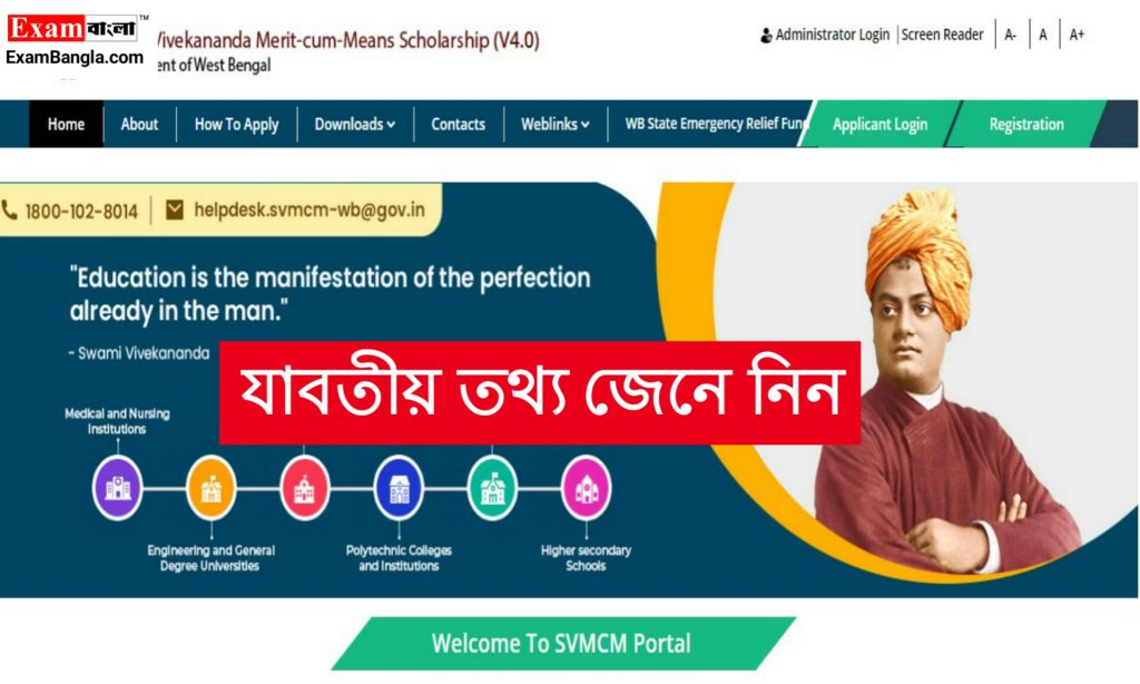 ১) বিকাশ ভবন স্কলারশিপে আবেদন জানাতে হলে পড়ুয়াদের প্রথমে (www.svmcm.wbhed.gov.in)