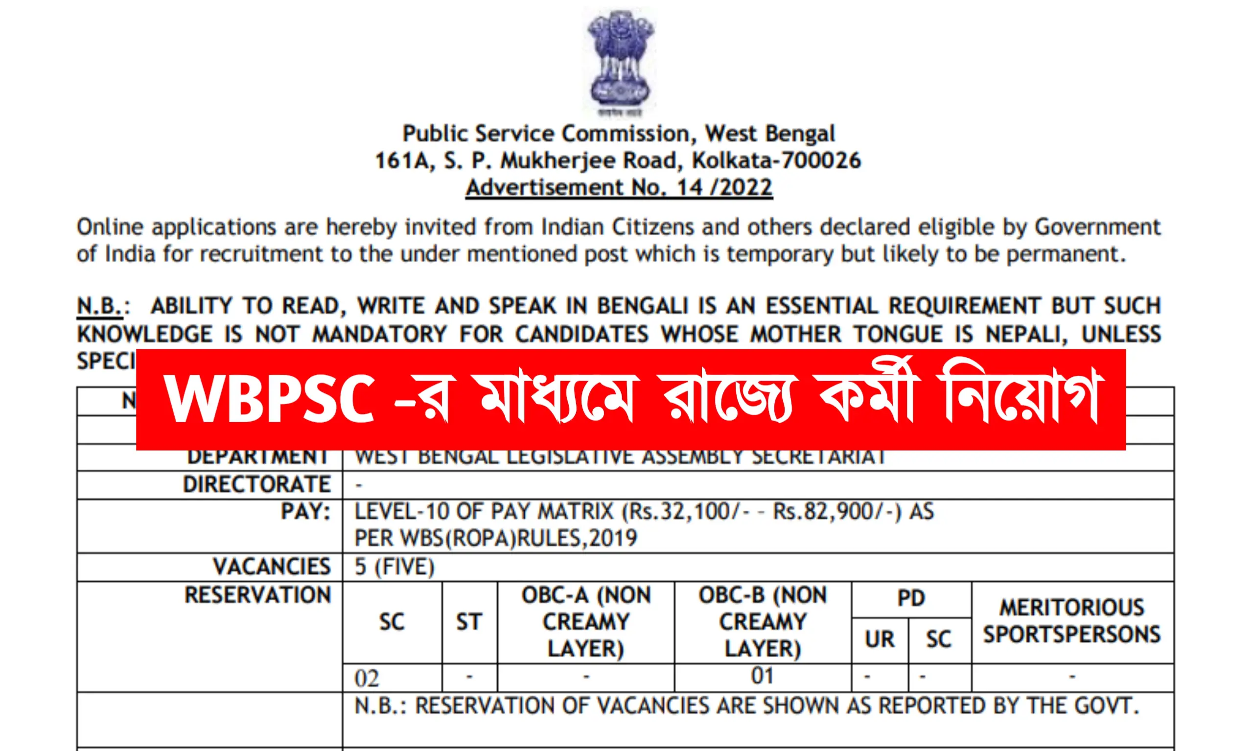 রাজ্যে WBPSC -র মাধ্যমে কর্মী নিয়োগ, প্রতিমাসে বেতন ৩০ হাজার টাকা