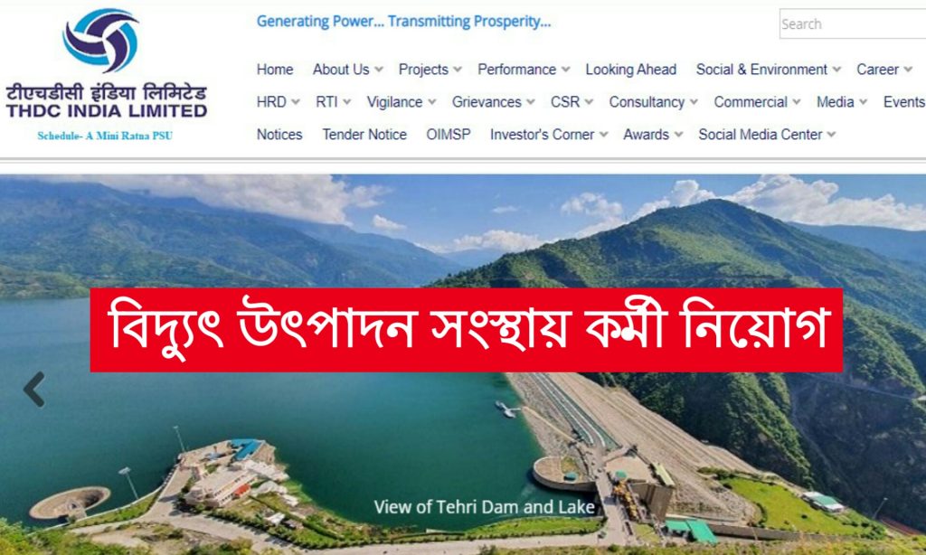 তেহেরি হাইড্রো ডেভেলপমেন্ট কর্পোরেশন ইন্ডিয়া লিমিটেড (THDC Ltd) নামক কেন্দ্রীয় সংস্থার পক্ষ থেকে সম্প্রতি একটি নিয়োগ বিজ্ঞপ্তি প্রকাশিত হয়েছে। যেকোনো ভারতীয় নাগরিক পশ্চিমবঙ্গের যে কোন জেলা থেকে আবেদন করতে পারবেন। আবেদন পদ্ধতি এবং শিক্ষাগত যোগ্যতা সহ অন্যান্য বিস্তারিত তথ্য উল্লেখ করা থাকল আজকের এই প্রতিবেদনে।