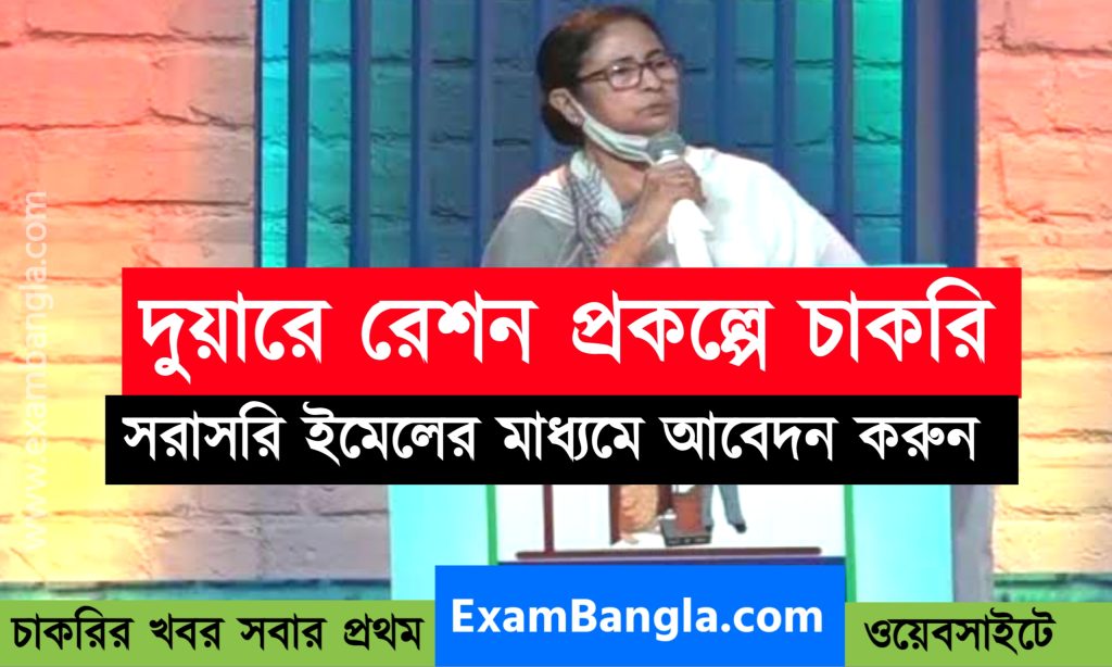 দুয়ারে রেশন প্রকল্পে কর্মী নিয়োগ। মুখ্যমন্ত্রীর ঘোষণা অনুযায়ী দুয়ারে রেশন প্রক্রিয়ার কাজের জন্য কর্মী নিয়োগের বিজ্ঞপ্তি প্রকাশিত হল। পশ্চিমবঙ্গ সরকারের খাদ্য ও সরবরাহ দপ্তরের তরফ থেকে এই নিয়োগের বিজ্ঞপ্তি প্রকাশিত হয়েছে। পশ্চিমবঙ্গের যেকোন জেলা থেকে এই পদগুলিতে আবেদন করতে পারবেন। কোন কোন পদে নিয়োগ করা হবে, শূন্যপদের সংখ্যা, শিক্ষাগত যোগ্যতা, বয়স সীমা, আবেদন পদ্ধতি সহ রইল বিস্তারিত প্রতিবেদন।